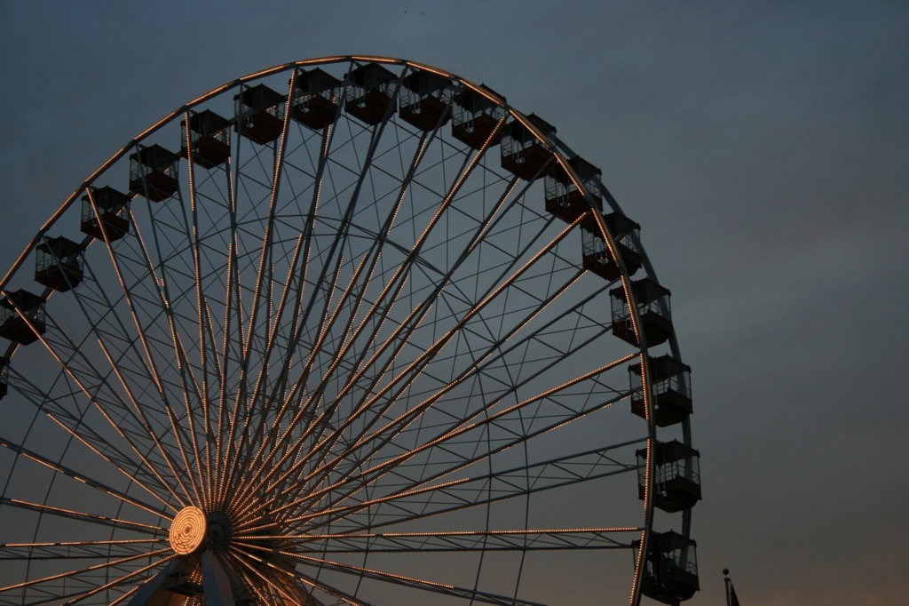 Old Prentice will come down. The demolition permit has been issued and fate and progress will have their day. Their wheel will go where it will. It is only appropriate that in the background the city’s wheel will carry lovers and children 150 feet into the air. Very few of these will be thinking they are the descendants of the blushing couples and childlike merriment that carried their ancestors 263 feet over the White City in the year of 1893 in a giant disc named for its inventor.