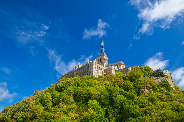 Now mountains are ferocious places even the ones that are only a hundred meters tall.  On a mountain the covenant of the law that at once condemns us and leads us to the path to righteous living was given.  They are places inhabited by mystics and outlaws and where the tempter tells us to throw ourselves down.  Mont Saint Michel is even more such a place.  It has a spire that marries heaven to earth reminding us here is a place that can join Neil and Marina to one another and to the One that Marina calls “the Love that loves us.”